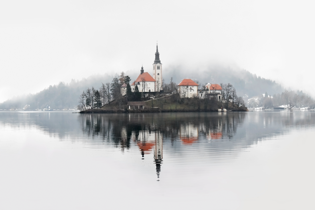 湖と小島、そしてブレッド城